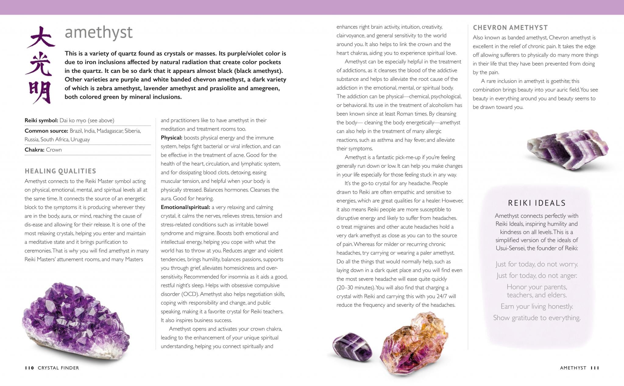 Leading crystal expert Philip Permutt shows how Reiki healing and crystal therapy can be combined for effective self-healing and improved wellbeing. At the simplest level, you can charge a crystal with Reiki energy and then carry it with you or give it to someone in need of support, but this groundbreaking book goes well beyond that. As well as learning how to select and prepare crystals, you will discover the intricate and effective Crystal Reiki grids that will dissolve blocked and stagnant energy, remove negative energy, such as stress, from the body and boost the body’s natural self-healing for a range of common health conditions. In this comprehensive guide, Philip identifies 101 crystals that work exceptionally well when combined with Reiki energy. Arranged in colour groups, healing and metaphysical properties, chakra associations and Reiki symbol connections are given for each one. There are also in-depth profiles of quartz crystal, amethyst and ruby – three of the most common and effective crystals used by Reiki Masters.