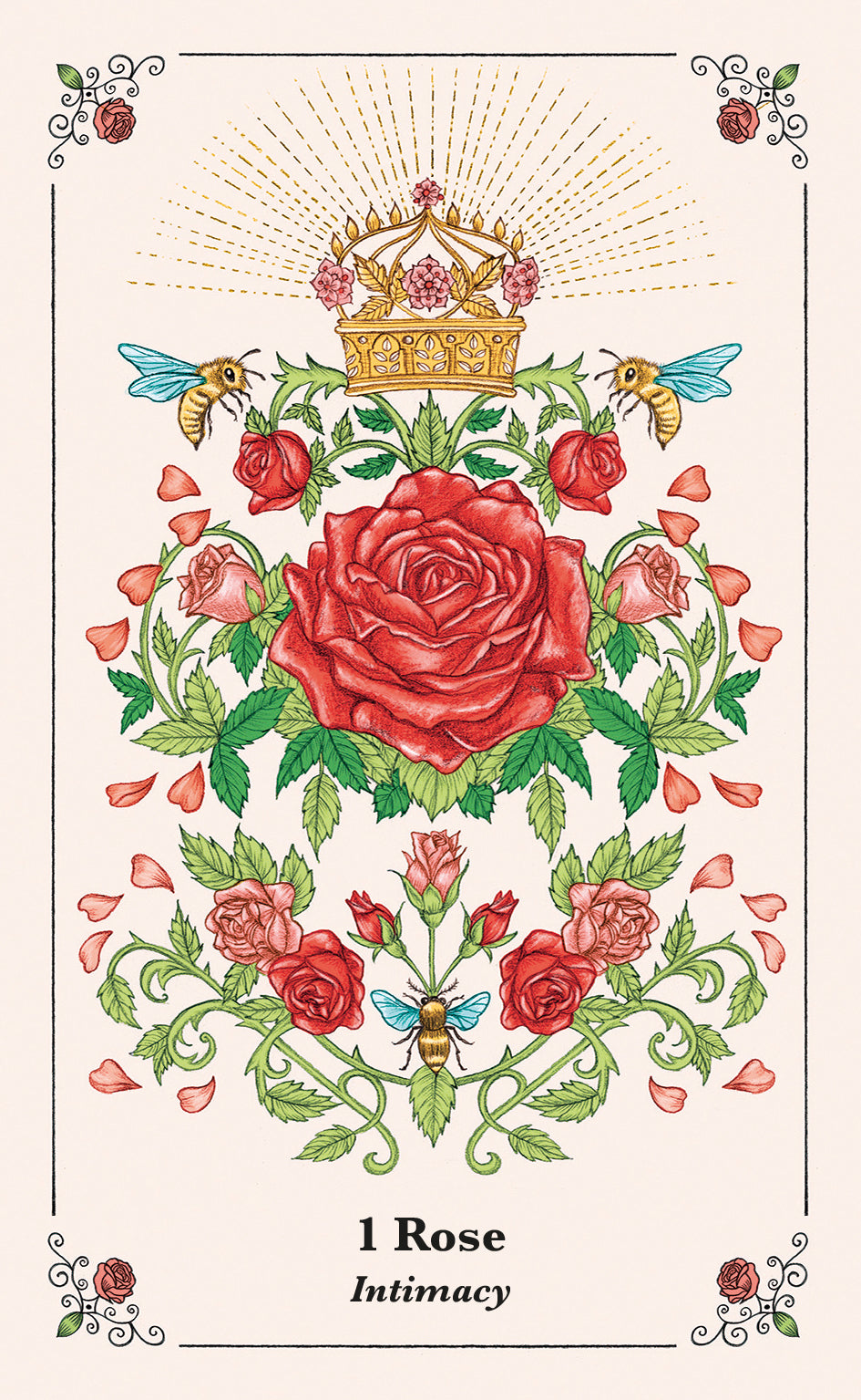 The card descriptions give meanings for all 52 cards, including deities associated with each flower, the meanings of different colours and simple spells and superstitions. For example, red roses mean true love – for good luck, throw their petals into a fire!
