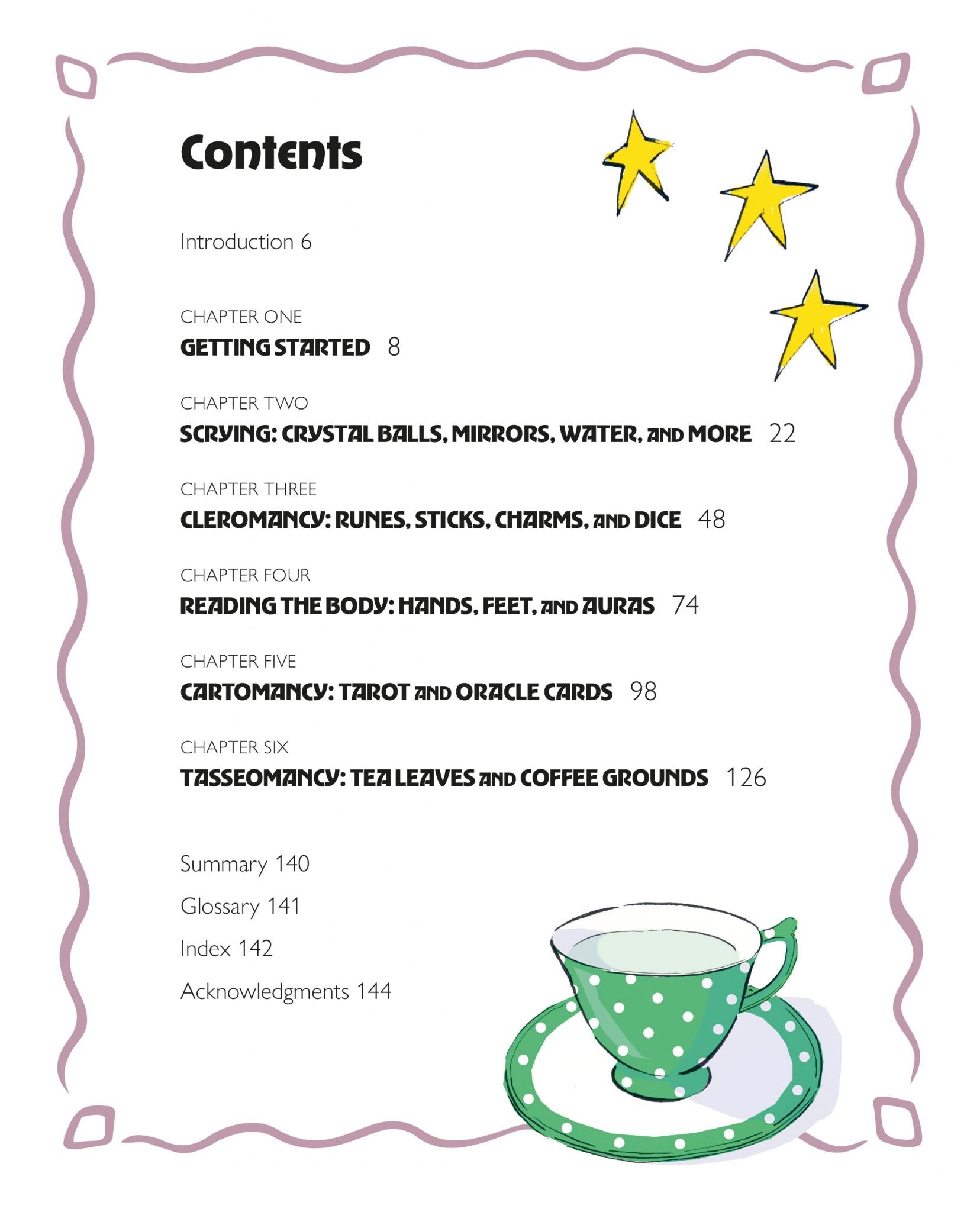 Next, explore other key practices from scrying – gazing into crystal balls, mirrors, water, smoke and ink – to casting runes, dice and charms for psychic insight. You will also find out how to read body parts, including the palms, feet and aura, interpret tarot and oracle cards and decipher messages from tea leaves and coffee grounds.