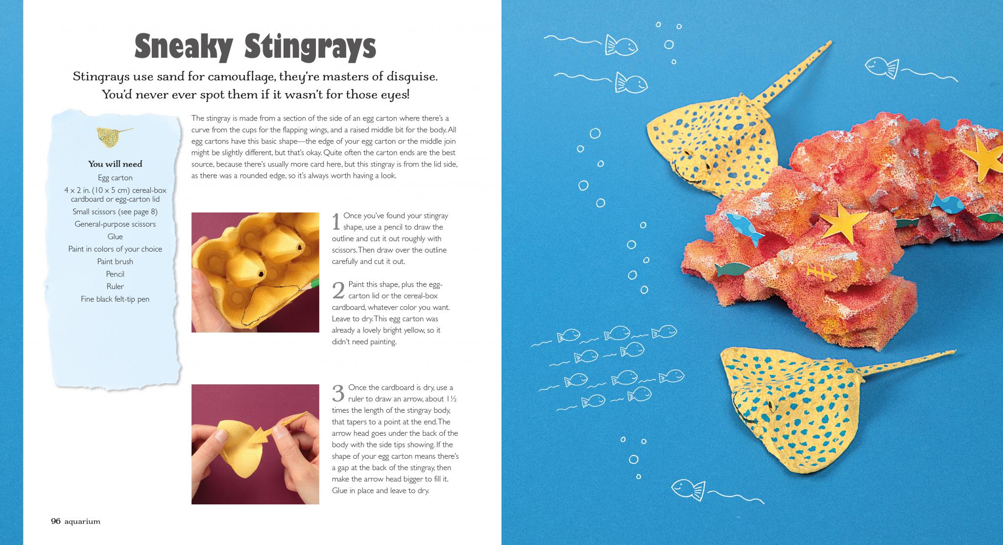 In the Snow, a delightful family of penguins made of egg cartons awaits, along with a seal, walrus and polar bear. The Aviary is home to chattering parrots, lovebirds and even a bald eagle. Finally, dive into the Aquarium, where manta rays, stingrays, dolphins, jellyfish and octopuses come to life.